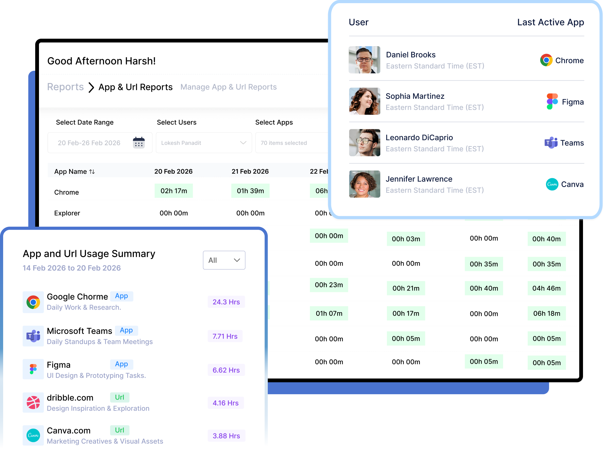 Understanding productivity starts with visibility. Without app-level insights, managers are left relying on assumptions instead of data. Our platform gives you a complete breakdown of how your team spends time across applications like Chrome, Teams, Figma, and more.